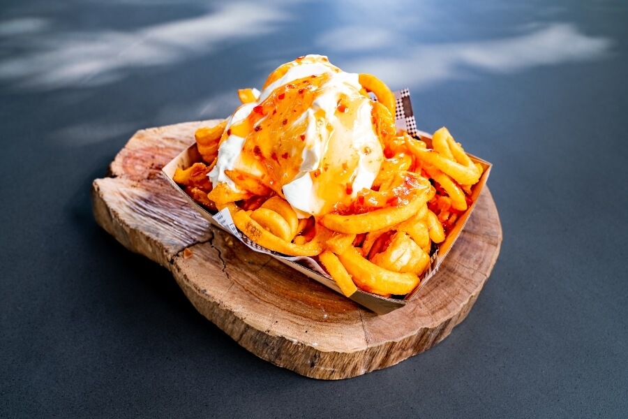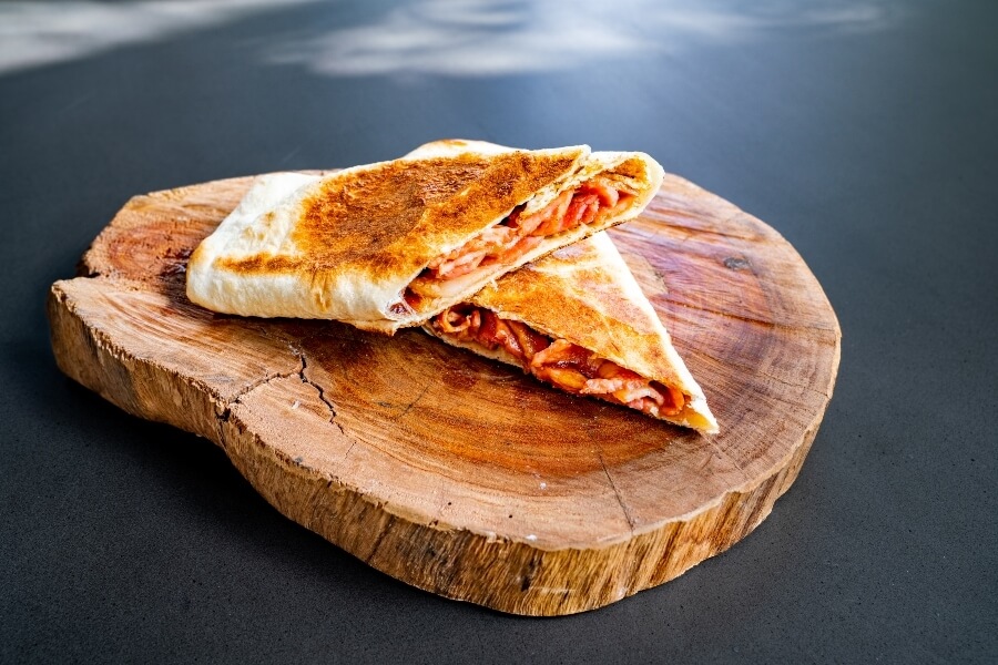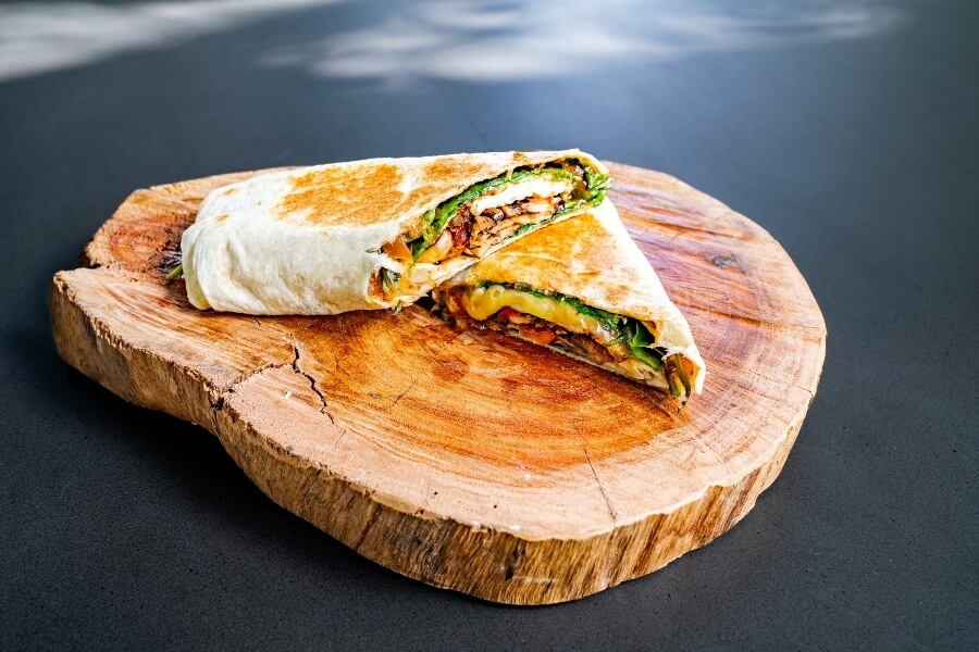Sweet chilli chicken tenders, sour cream, lettuce, cheese & tomato & sweet chillil sauce (fresh)