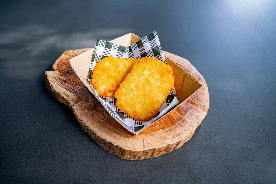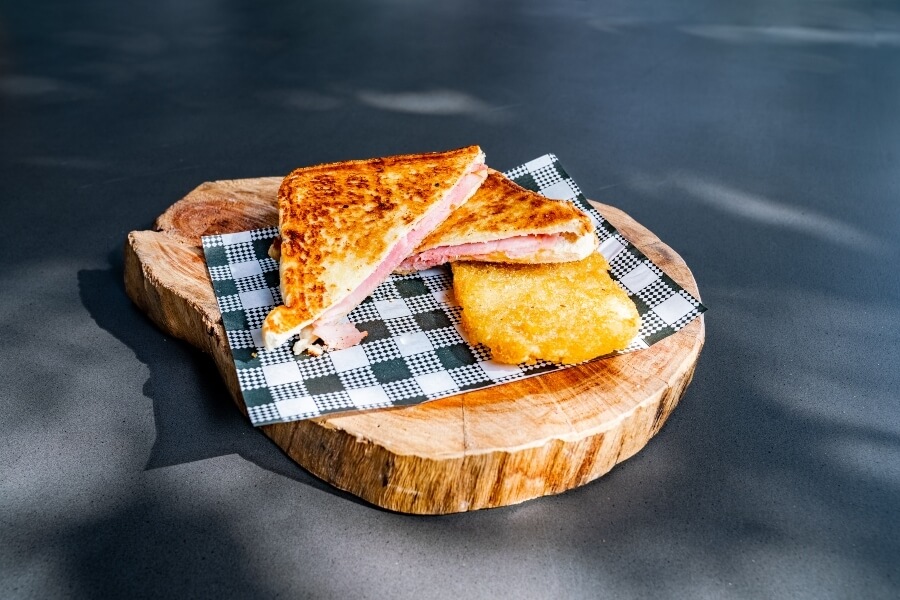 Good old fashioned ham & cheese - tomato, optional on white bread with a hash brown