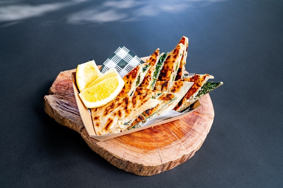 Baby spinach, two eggs, cheese, mushrooms, sundried tomatoes & relish