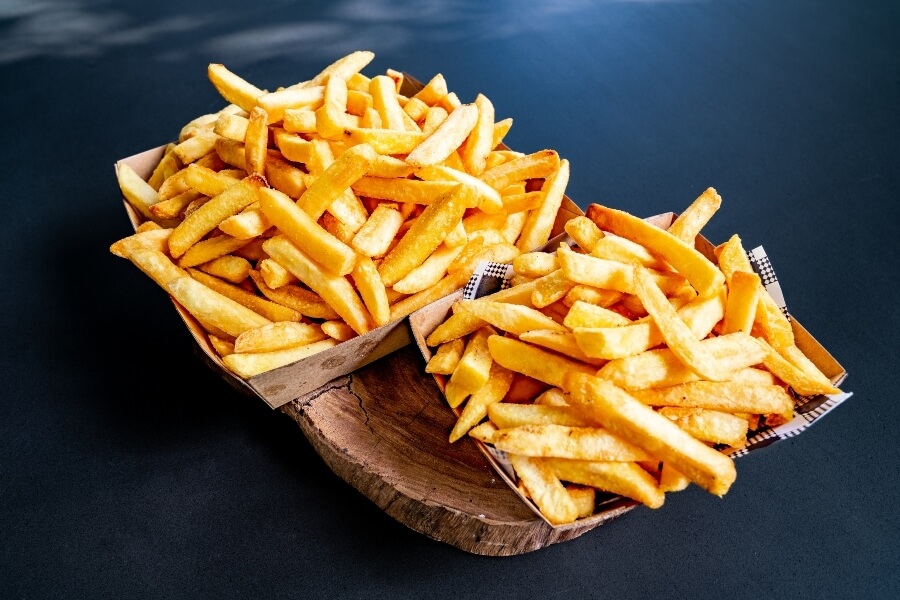 Battered snapper tails, tartare sauce, lettuce cheese and tomato