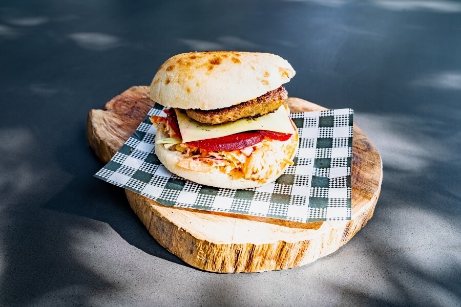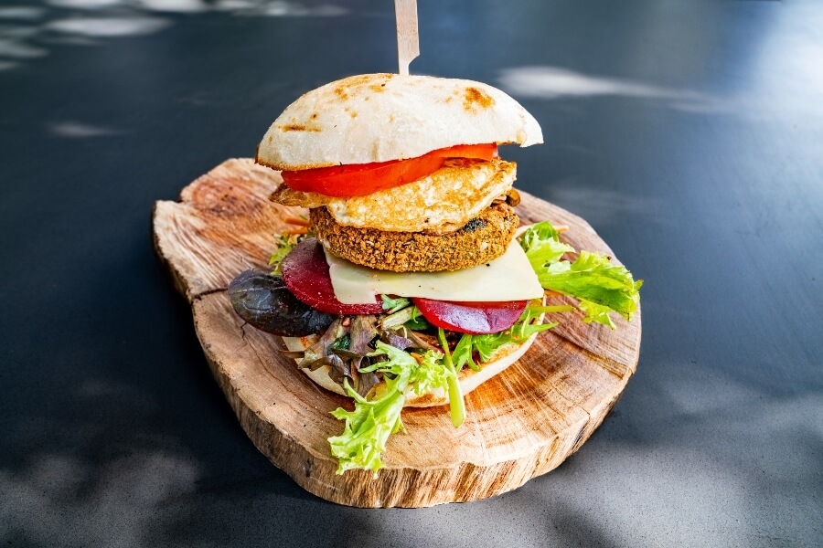 Vegetable pattie, mushrooms, egg, lettuce, tomato, cheese, creamed leeks & our special relish
